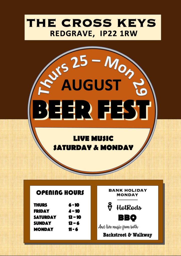Beer Fest August 25-29 Posted bystephenlarderAugust 17, 2022Posted inUncategorized Share this: Click to share on Facebook (Opens in new window) Facebook Click to share on WhatsApp (Opens in new window) WhatsApp Click to email a link to a friend (Opens in new window) Email Like Loading...