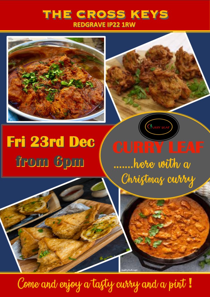 We’ve got the lovely Winston from Curry Leaf coming along to the pub on Friday evening, serving up his usual scrummy curries.